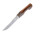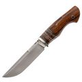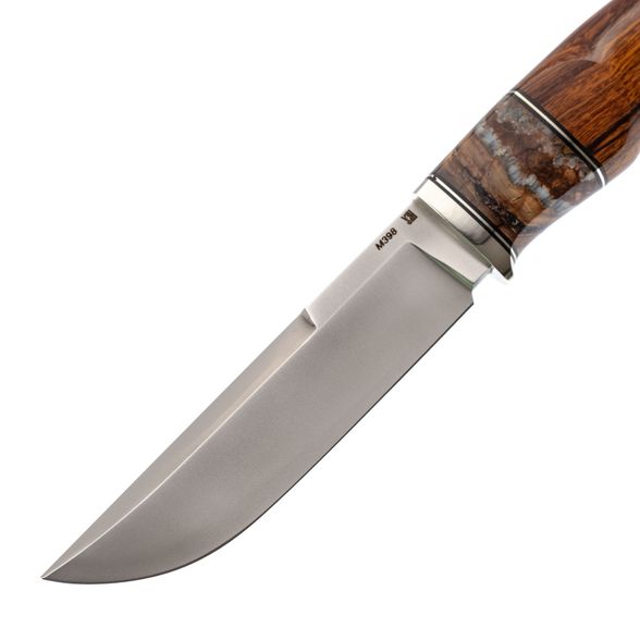 Клинок выполнен из премиальной порошковой стали Bohler M398 - одна из лучших порошковых нержавеющих сталей на рынке. Она очень долго держит заточку, агрессивно режет и имеет высокую коррозионную стойкость. Такой набор характеристик делает эту сталь идеальным выбором для хорошего охотничьего ножа. Форма у клинка классическая, проверенная временем, форма с прямым обухом, она обеспечивает ножу высокую универсальность, такой формой удобно делать любую работу. Геометрия у ножа заточена под охотничьи нужды - высокие прямые спуски обеспечивает отличный рез, а длинное фальшлезвие улучшает проникающую способность.