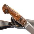 Рукоять выполнена из айронвуда - один из самых твёрдых сортов древесины в мире, она обеспечивает ножу высокую прочность и добавляет приятной тяжести. В качестве украшения на рукояти имеется мозаичный пин и вставка с стабилизированным бивнем мамонта, это вместе благородной текстурой айронвуда создаёт отличную композицию, которая к тому же всегда будет индивидуальной ввиду текстуры материалов. форма у рукояти изогнутая, что позволяет ножу предельно естественно ложиться в руку, а её объём обеспечит комфорт даже при длительной работе ножом.