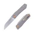 Клинок выполнен из стали N690, это австрийская нержавеющая сталь из среднего ценового сегмента, которая по праву пользуется популярностью в ножеманских кругах. За свою стоимость она не плохо держит заточку, имеет высокую ударную вязкость и легко точится - отличная сталь для повседневного ножа. Форма клинка Sheepsfoot делает этот нож особенной удобным для города, так как за счет опущенного деликатного кончика ей очень удобно открывать коробки, упаковки, а за счёт прямой режущей кромки разрезаемый материал не соскочит с лезвия, это будет удобно при резке картона, например. У ножа прямые спуски от тончайшего в 2 мм обуха, и это не при самом узком клинке, что обеспечивает ножу идеальный рез.