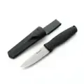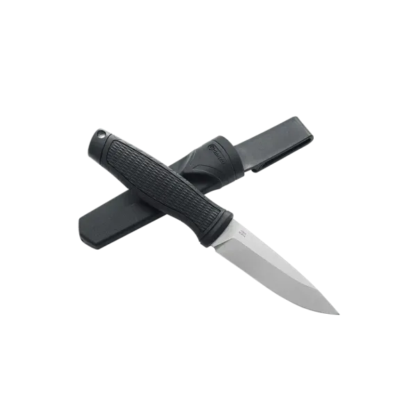 Рукоять выполнена из резинопластика - лёгкого, прочного и влагостойкого материала. Благодаря текстурированной поверхности нож надёжно фиксируется в руке, даже в мокрых условиях. Эргономичная форма позволяет работать продолжительное время без ощущения усталости, снижая нагрузку на кисть.