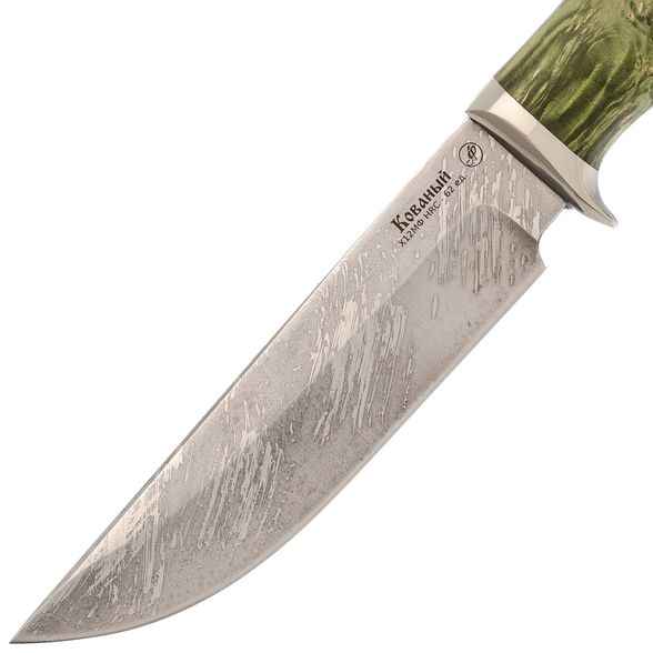 Клинок изготовлен из высококачественной российской стали Х12МФ, которая славится своей способностью долго сохранять остроту, даже при частом использовании. Форма клинка классическая, проверенная временем: прямой обух и острие, что позволяет комфортно выполнять различные задачи, от точных резов до грубых работ.