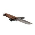 Рукоятка состоит из двух накладок, выполненных из натурального дерева – ореха с защитной влагостойкой пропиткой. Скреплены накладки при помощи двух винтов с потайными шляпками под шестигранный ключ. Клинок можно привязать к шнурку, чтобы не потерять в походе. Кроме ореха производитель также применяет карельскую березу, граб и другие материалы с пропиткой и покраской под венге. Авторские модели делают из бересты с оригинальными подписями. В продаже есть несколько модификаций ножей от этого производителя.