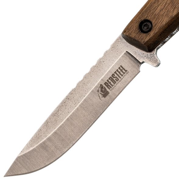 Клинок изготовлен из стали AUS-8, которая является отличным выбором для бюджетных ножей. Эта сталь легко поддаётся заточке, обеспечивая хорошие режущие свойства. AUS-8 также обладает высокой ударной вязкостью и сопротивлением коррозии, что важно для использования в полевых условиях. Спуски клинка расположены выше середины, что позволяет эффективно резать и при этом сохраняет прочность лезвия.
