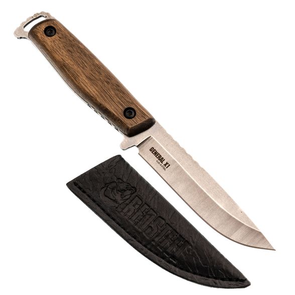 Ножны для General X1 выполнены из кожи и имеют простой дизайн. Они надёжно удерживают нож, но не предусматривают различных способов ношения. Оптимальным вариантом будет носить нож в рюкзаке или сумке, что делает его более подходящим для походов и путешествий, где нож будет использоваться в качестве вспомогательного инструмента.