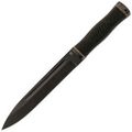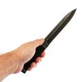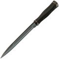Рукоять ножа выполнена из резины, что обеспечивает надежный и комфортный хват, даже если руки влажные или вспотели. Резиновая поверхность помогает гасить вибрации, что значительно снижает нагрузку на руку при выполнении силовых работ. Кроме того, такая рукоять делает нож удобным для продолжительного использования, не вызывая усталости или дискомфорта. Нож также оснащен ножнами, выполненными из качественного материала, которые обеспечивают надежную защиту и удобство при ношении.