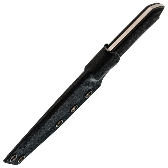 Конструкция тако для ножен выбрана не случайно: она обхватывает нож с двух сторон, делая всю систему максимально плоской и незаметной под одеждой. Продумано и удобство извлечения - есть специальный выступ для упора большим пальцем, благодаря которому нож выходит из ножен легко и без лишних усилий. Но главная фишка - это люверсы по периметру. Через два параллельных отверстия на донце можно продеть шнурок и носить нож на шее в качестве скрытого инструмента, а остальные отверстия позволяют закрепить ножны на рюкзаке или снаряжении любой современной подвесной системой.