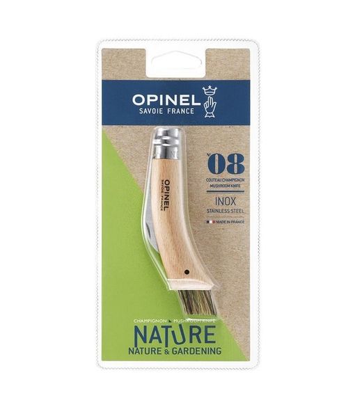 Охота за грибами превращается в увлекательное приключение, если у Вас в кармане имеется верный помощник - компактный нож грибника Opinel №8 из нержавеющей стали. Маленький грибной нож с кисточкой отличается эргономичной формой рукояти и клинка. Волнообразный изгиб как нельзя лучше способствует комфортному срезыванию гриба с любой толщиной ножки, и защите грибника от возможности получить порезы во время работы с инструментом. С помощью щеточки на конце рукояти можно с легкостью очистить растение от остатков земли, грязи и мха. Складной грибной нож от компании Опинель оснащен надежным замком Virobloc.