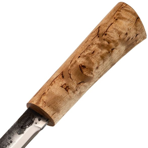 - Рукоять — стабилизированная карельская берёза. В отличие от обычной древесины абсолютно не боится влаги и механических воздействий.