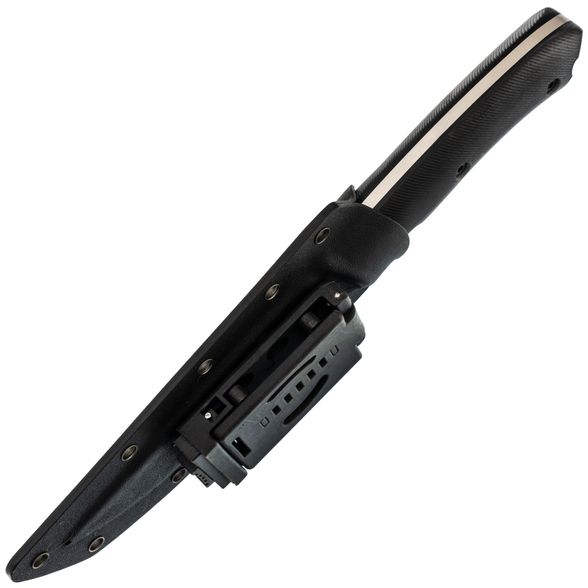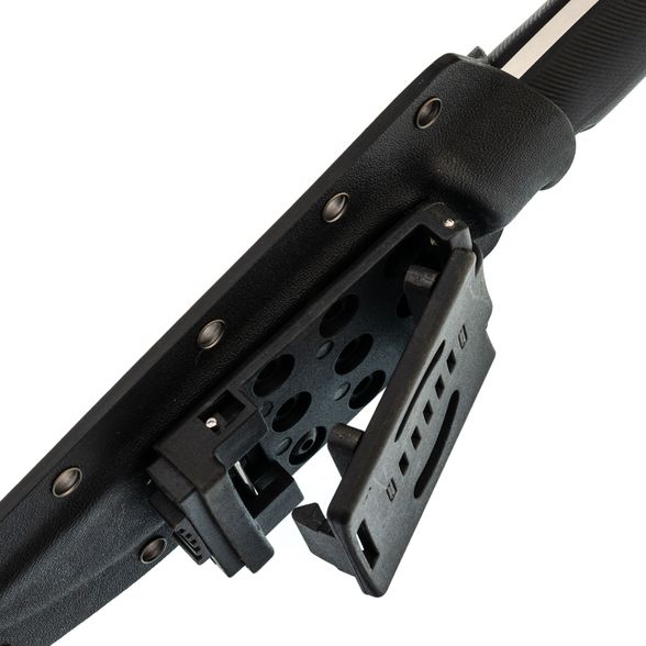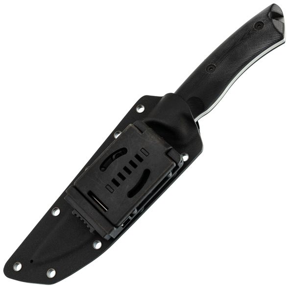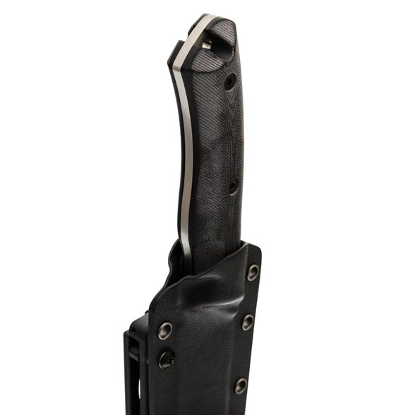 Ножны, поставляемые в комплекте, изготовлены из кайдекса и имеют хорошую форму, за счет чего надежно фиксируют нож, даже при тряске, создавая тем самым безопасное ношение и быстрый доступ в любой момент. Они оснащены креплением типа tek-lok для ношения на ремне, но благодаря множеству люверсов, их можно закрепить так, как удобно именно вам.