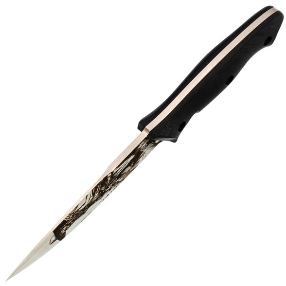 Ranger от HONOR - это про спокойную уверенность в инструменте. Крупный фикс без лишних усложнений, сделанный для тех случаев, когда нож берут не ради витрины. В нём чувствуется опыт Nozhikov: форма, размеры и баланс продуманы на основе реального использования. Визуальный акцент - лазерная гравировка с ковбоем и индейцем на клинке - добавляет характер, не мешая делу.