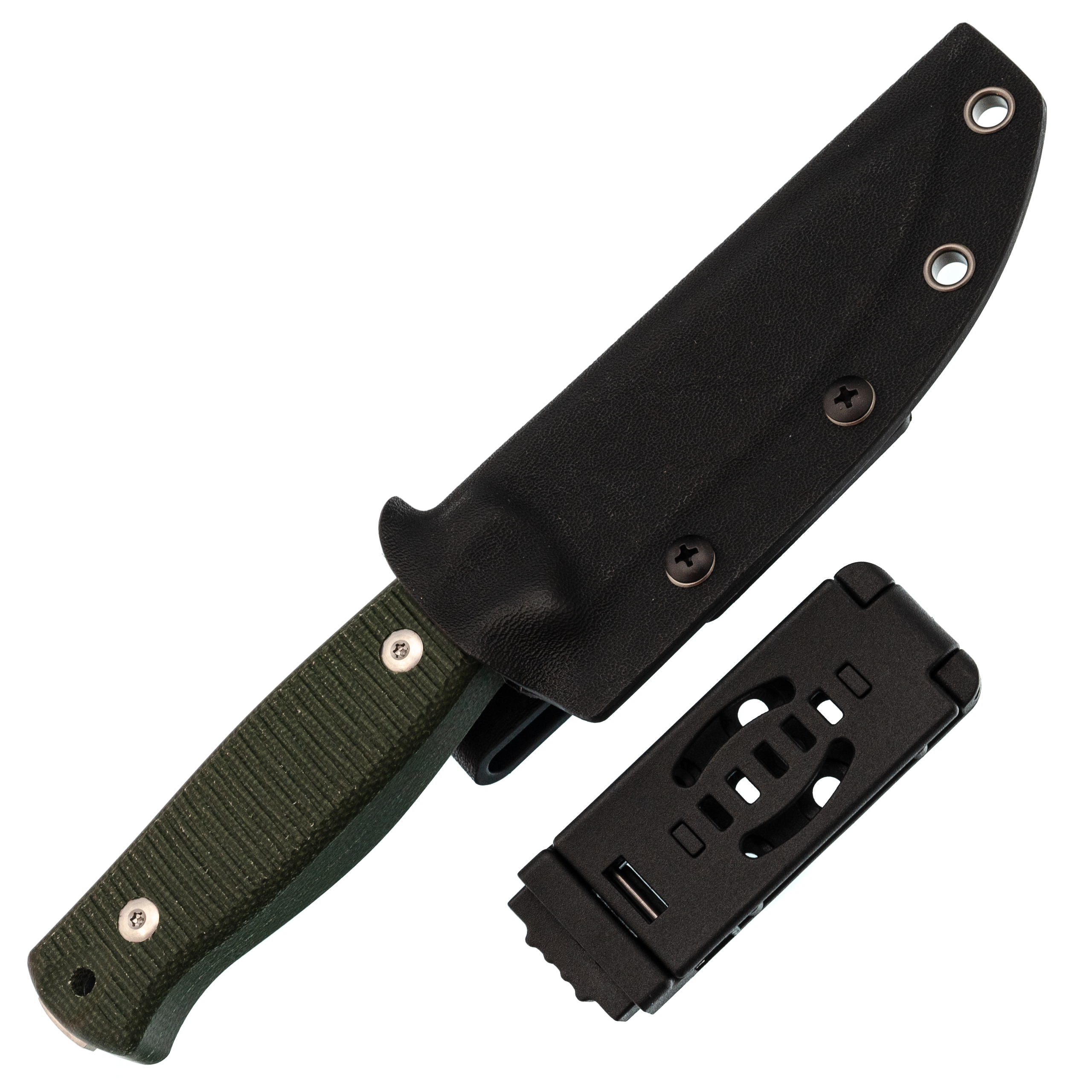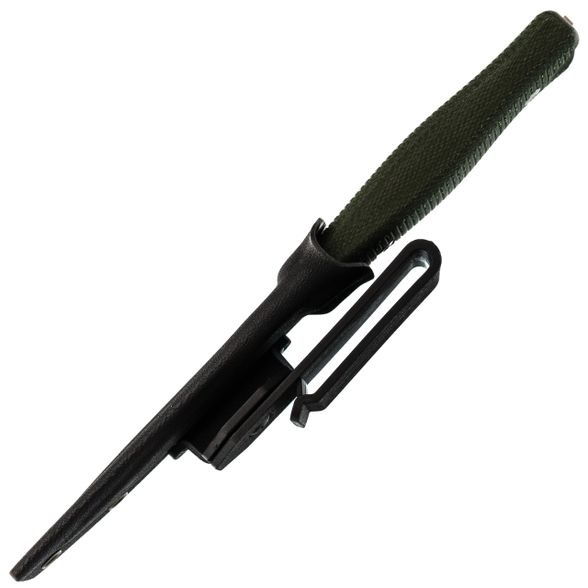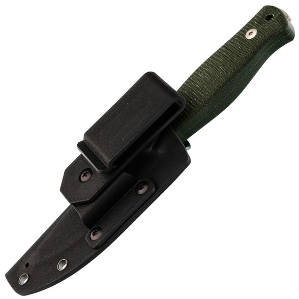 К ножу идут ножны из прочного пластика Kydex, собранные по типу тако - они плотно обхватывают рукоять, фиксируя нож без лишних ремешков, и добавляют минимум объёма при ношении. Для крепления на снаряжении предусмотрено несколько вариантов прямо в коробке: есть простая клипса для вертикальной подвески, а также универсальный адаптер Tek Lok, с помощью которого нож можно носить горизонтально на ремне. В самих ножнах уже сделаны отверстия под винты, поэтому при желании легко прикрепить ножны к рюкзаку стропами, шнурами или нестандартными клипсами.
