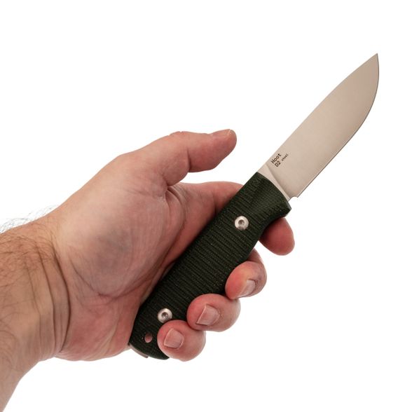 Модель Hoot S от Hot Knife получилась на удивление универсальной. Задуманный как охотничий разделочный нож, он отлично справляется со своей главной задачей, но на деле его возможности шире. Это крепкий рабочий инструмент средних размеров, который не боится грязной работы. Его смело можно брать в поход, если ваши планы не включают рубку брёвен, а основной упор идёт на приготовление еды, работы с верёвками или строгание. В этой модели соединились опыт двух российких марок: Hot Knife и OWL Knife. Первые отвечали за качество исполнения, вторые - за продуманную геометрию, где каждый изгиб выверен под реальные задачи на природе.