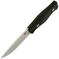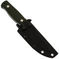 Форма клинка - классический Drop-Point, где обух плавно спускается к острию. Главная фишка здесь - заметное брюшко, то есть выраженный изгиб режущей кромки. Это сделано специально для протяжных резов: когда нужно одним длинным движением вспороть шкуру или разделать тушу, нож идёт как по маслу. При этом кончик остаётся достаточно тонким и хорошо контролируемым, чтобы аккуратно что-то проколоть или поддеть. Всё покрытие клинка матовое, без бликов - лишний свет на охоте или рыбалке не помешает.
