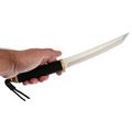 Особое внимание уделено рукояти ножа, выполненной из натурального дерева, что не только придает ему стильный вид, но и обеспечивает комфортное использование. Эргономичный дизайн рукояти позволяет удобно располагать руку, что значительно снижает усталость даже при длительных тренировках или исследовании дикой природы. Легкий вес (235 г) и компактные размеры делают нож отличным выбором для активного отдыха на природе и в городских условиях.