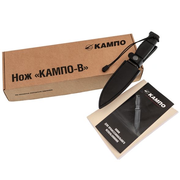 Нож КАМПО-В - это надёжный спутник для туриста, рыболова, охотника или энтузиаста активного отдыха. Являясь уменьшенной версией легендарного штык-ножа 6Х9, он сохраняет все ключевые достоинства оригинала, предлагая при этом более удобный размер для повседневного ношения и использования в походных условиях.