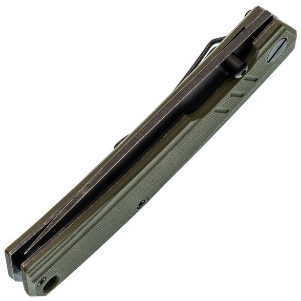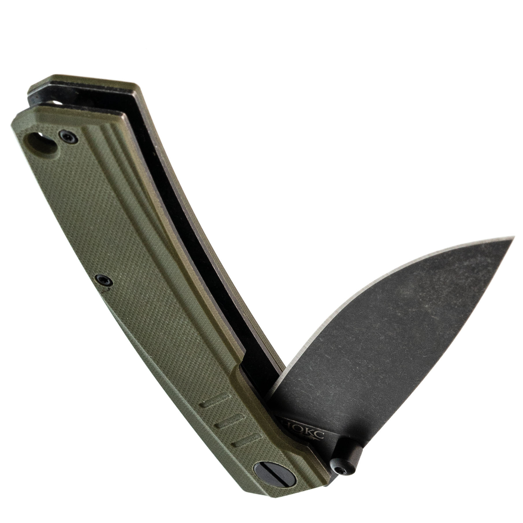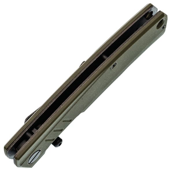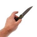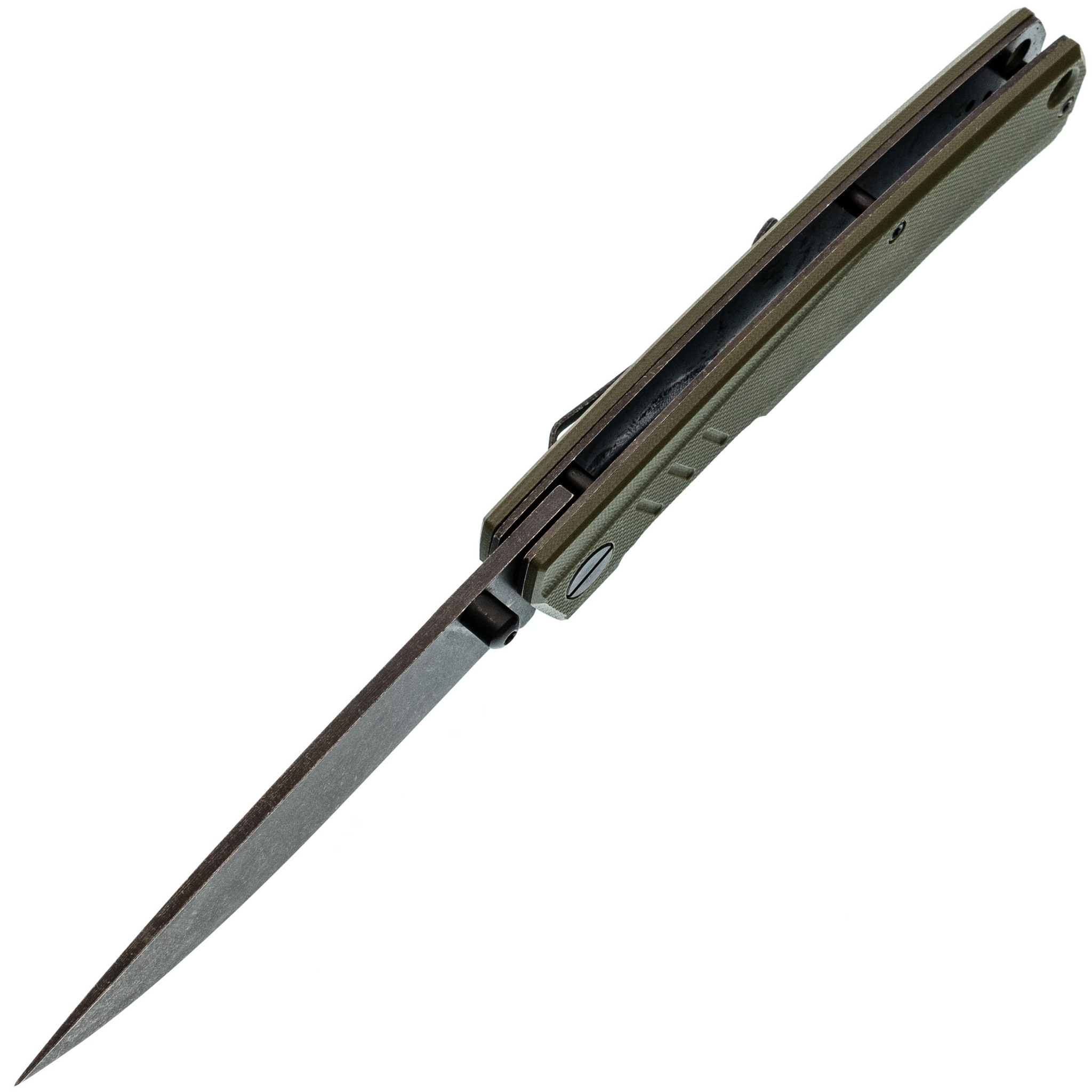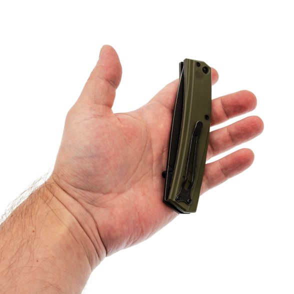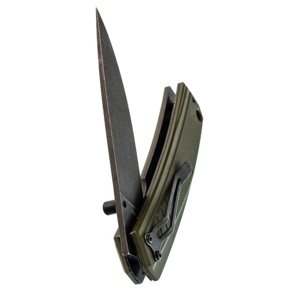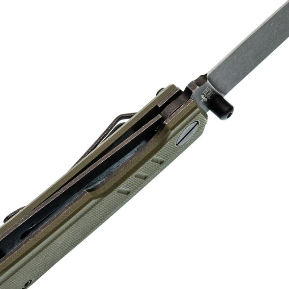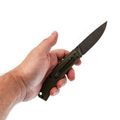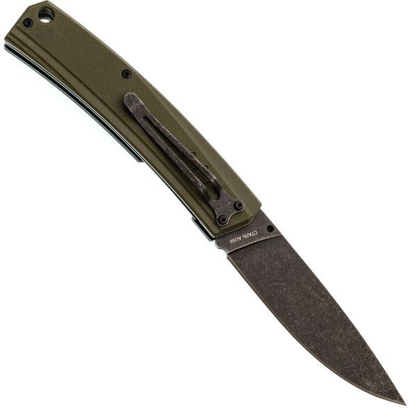 Форма клинка выполнена в классическом стиле Drop-Point - универсальная геометрия, которая одинаково хорошо справляется и с резом, и со строганием. Прямые спуски от обуха делают работу лёгкой и предсказуемой. Открывается модель при помощи шпеньков, расположенных с двух сторон - это удобно и для правшей, и для левшей.