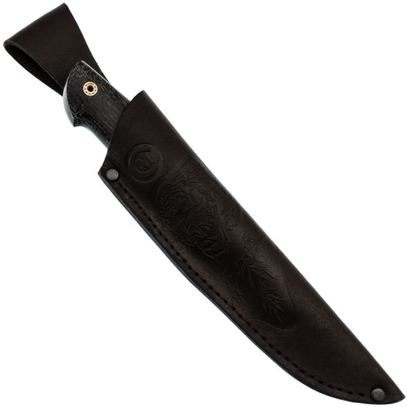 Ножны для «Каймана» выполнены из высококачественной кожи, что гарантирует долговечность и удобство в ношении. Они обеспечивают жесткий и свободный подвес, который позволяет легко носить нож на поясе или в другом удобном месте. Кожаные ножны сочетают в себе прочность и эстетику, создавая идеальный комплект для охотника.