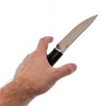 Клинок ножа выполнен из премиальной порошковой стали M390, которая зарекомендовала себя как классика среди ножевых сталей. Это нержавеющая сталь, которая отлично сопротивляется коррозии и сохраняет свою остроту в течение длительного времени. Множество производителей премиальных ножей выбирают именно эту сталь, ценя её за исключительный баланс между стойкостью к образованию ржавчины и долгосрочной износостойкостью. Высокие спуски клинка ножа «Кайман» обеспечивают отличные режущие характеристики, что делает его идеальным для задач, связанных с разделкой и ошкуриванием.