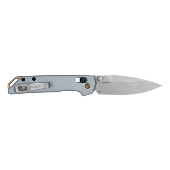 Рукоять ножа изготовлена из анодированного алюминия цвета ледяного голубого с изысканными золотыми акцентами: золотой PVD-поворот, анодированная накладка на спинку и отверстие для шнура придают ей особый стиль. Замок DuraLock с надежно фиксирует лезвие в открытом положении, а симметричный дизай замка обеспечивает безопасное закрытие. Дополнительным преимуществом является переставляемая клипса глубокой посадки, позволяющий носить нож как под праву., так и под левую руку.