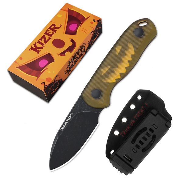 Познакомьтесь с Kizer Drop BearFix - фиксированным инструментом, который словно подсвечен изнутри теплым светом тыквенной свечи! Полупрозрачная рукоять желтого оттенка открывает взгляду забавную улыбающуюся мордашку. Этот комплект - не просто практичная вещь, а цельный ансамбль: ножны продолжают праздничную тему, создавая гармоничный дуэт. Лимитированный выпуск делает эту модель желанным экземпляром для коллекционеров и всех, кто ценит необычные детали.