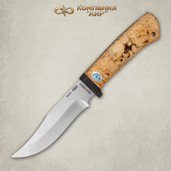 Стильный клинок с рукоятью из карельской березы и стальным лезвием – это верный помощник во время лесных работ, рыбалки и туризма. Он очень легкий и практически не заметный, может крепиться к поясу с помощью темляка или чехла.