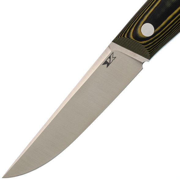 Клинок ножа выполнен из стали PGK – высокоуглеродистой инструментальной стали, известной своей прочностью, твердостью и способностью долго удерживать остроту. Такие характеристики обеспечивают высокую производительность ножа даже в сложных условиях. Однако сталь требует регулярного, но не сложного ухода, что помогает сохранить ее свойства. Клинок проходит криогенную термообработку, что дополнительно улучшает его характеристики. Интересной особенностью ножей мастерской "Семь Ножей" является ручная заточка, благодаря чему "Клык" поражает своей остротой прямо из коробки.