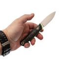 Клинок ножа изготовлен из высококачественной нержавеющей стали N690, которая известна своей прочностью и устойчивостью к коррозии. Криогенная термообработка, проведенная производителем, гарантирует, что клинок долго будет держать заточку и обеспечит точный и эффективный рез. Прямые спуски клинка и профиль Drop-Point придают ему универсальность, делая его идеальным для реза и строгания.