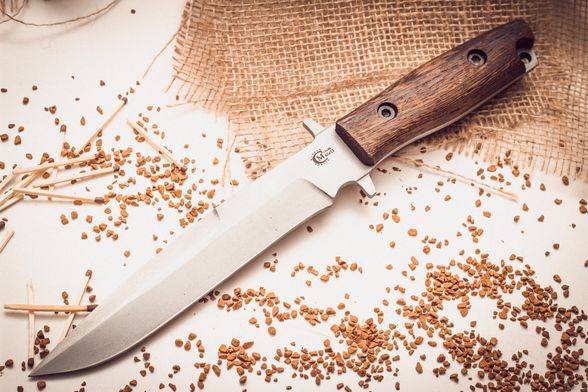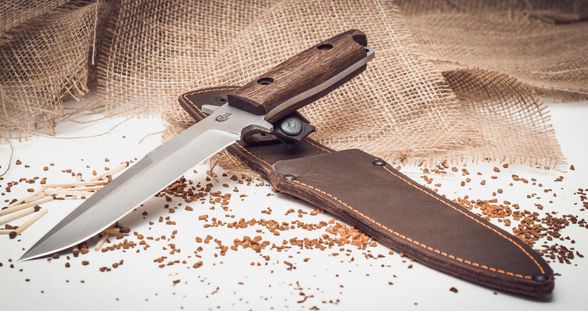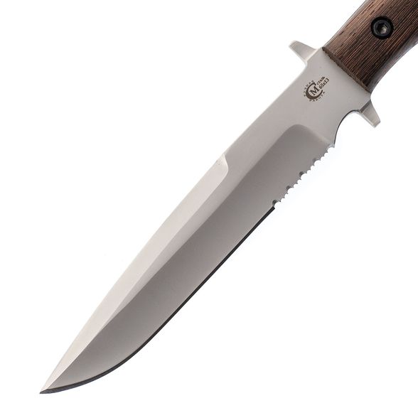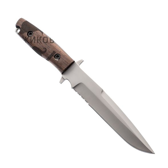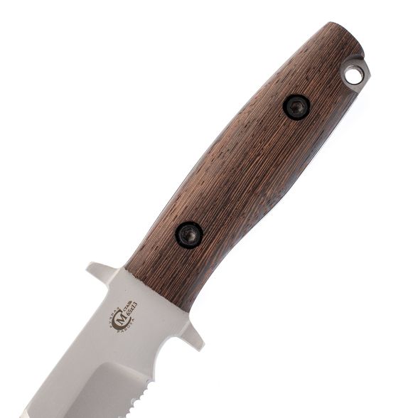 Рукоять выполнена по схеме Full-Tang - цельнометаллический монтаж, обеспечивающий максимальную надёжность и жёсткость конструкции. Толстые накладки из венге формируют комфортный объёмный хват, не утомляют руку при длительном использовании и надёжно фиксируются даже во влажных условиях. Благодаря продуманной форме рукоять удобно ложится в ладонь, не требуя дополнительной адаптации под хват.