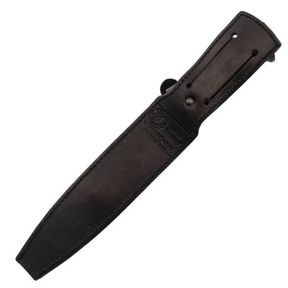 В комплекте идут функциональные ножны, где внутренний пластиковый вкладыш надежно фиксирует изделие и предотвращает повреждение режущей кромки. Обтяжка из натуральной кожи придает эстетичный внешний вид, защищает от механических воздействий и облегчает переноску. Конструкция ножен продумана так, чтобы инструмент всегда был под рукой и защищён от случайных выпадений.