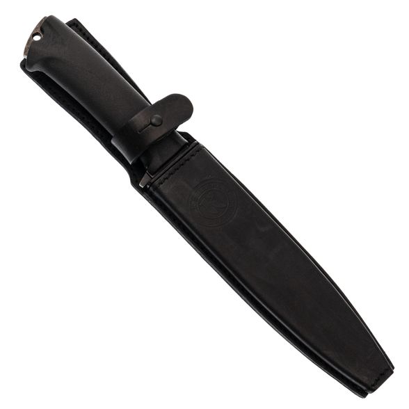 Внутренний пластиковый вкладыш защищает лезвие и сохраняет форму, внешний кожаный чехол добавляет солидности и комфорта при ношении на поясе.