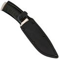 Рукоять из наборной кожи, используемая в данном ноже, обладает уникальными свойствами. Её пластичность позволяет комфортно держать инструмент в руке даже при высоких нагрузках, не боясь о её трещинах или поломках. Кроме того, кожаная рукоять не будет холодить вашу руку даже в прохладную погоду. Тыльная часть имеет специальный изгиб для удобства использования - это позволяет выполнить ножом работы, которые требуют рубки. Надежность и функциональность этой конструкции делают его отличным помощником как на природе, так и на производственных объектах.