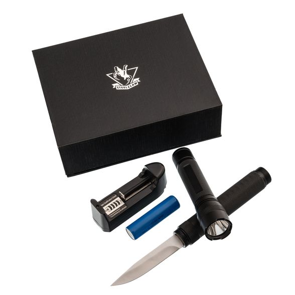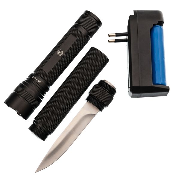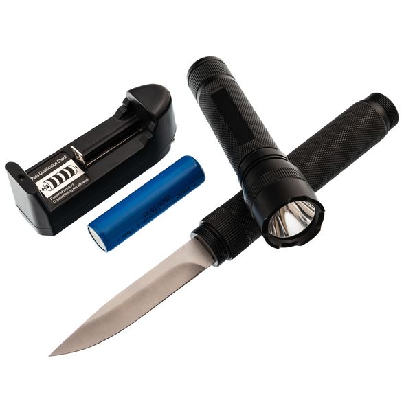 Комплектация: нож, фонарь, аккумулятор, зарядное устройство, подарочная упаковка.