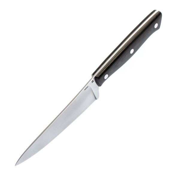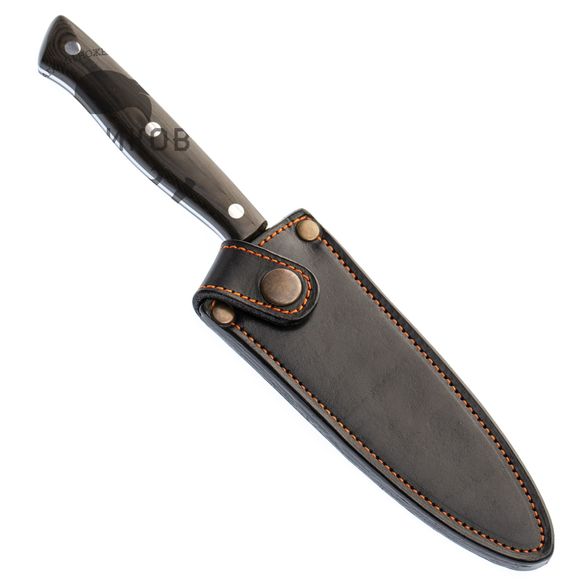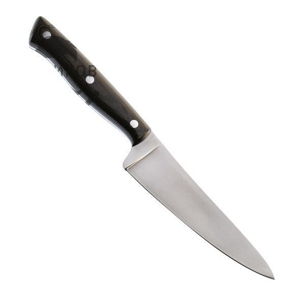 НОЖ КУХОННЫЙ №7, СТАЛЬ N690, микарта обеспечивает комфорт и безопасность в процессе выполнения любой кулинарной работы на домашей кухне или на кухне небольшого ресторана. Оптимальная геометрия позволяет выполнять весь спектр поварских операций: разделка мяса и дичи, чистка рыбы, шинковка зелени и тонкая нарезка овощей. Угол между клинком и рукоятью подобран таким образом, чтобы рука не уставала в процессе работы. Клинок ножа создан из нержавеющего сплава с высоким содержанием элемента "хром", благодаря чему создается повышенное сопротивление к ржавлению. Сплав легко поддается заточке, хорошо держит острые углы и обеспечивает создание клинков со сложной геометрией. Накладки выполнены из микарты - прочного синтетического материала, который идеально подходит для использования в любых условиях. Благодаря своей устойчивости к воздействию влаги, перепадам температур и агрессивным средам, они сохранят свой первоначальный вид на долгие годы. Особенностью этого материала является его цепкость при намокании, что обеспечивает надежное сцепление с рукой даже в мокрых условиях. Комплектуется кожаным чехлом для хранения и транспортировки, подвесов на нём не предусмотрено.