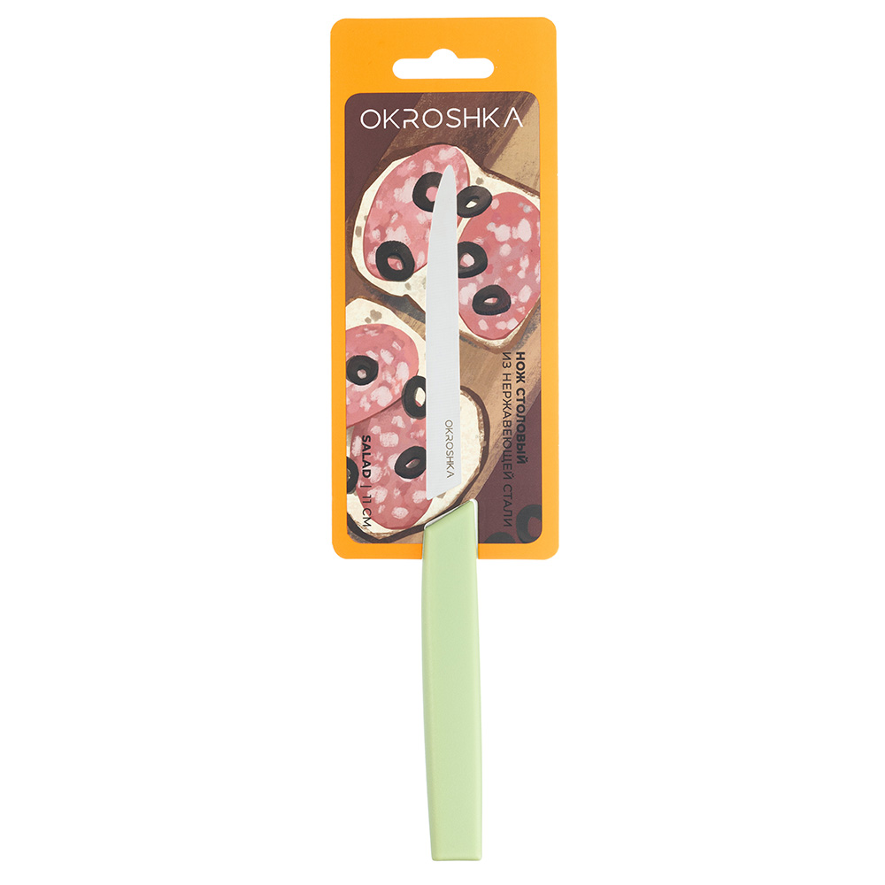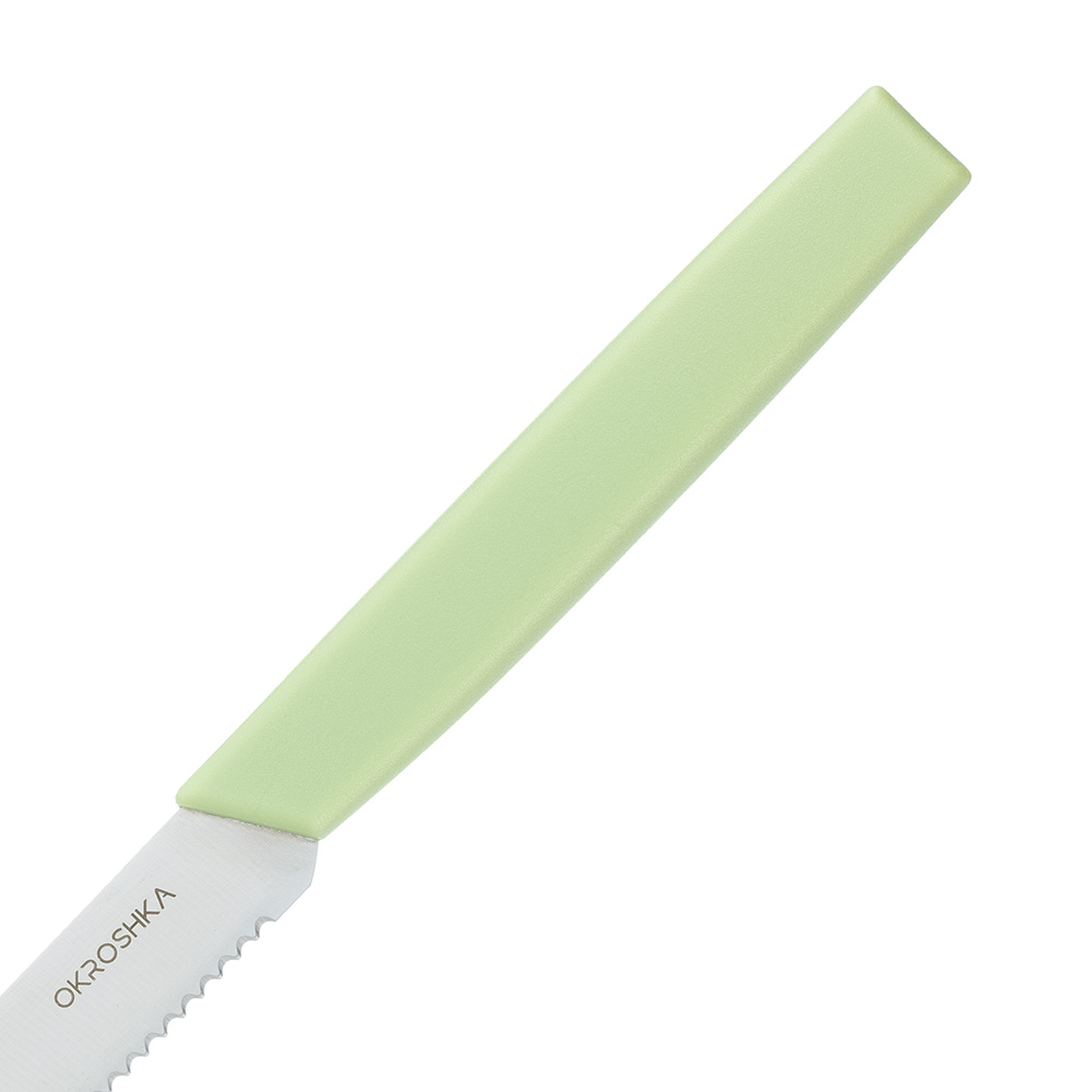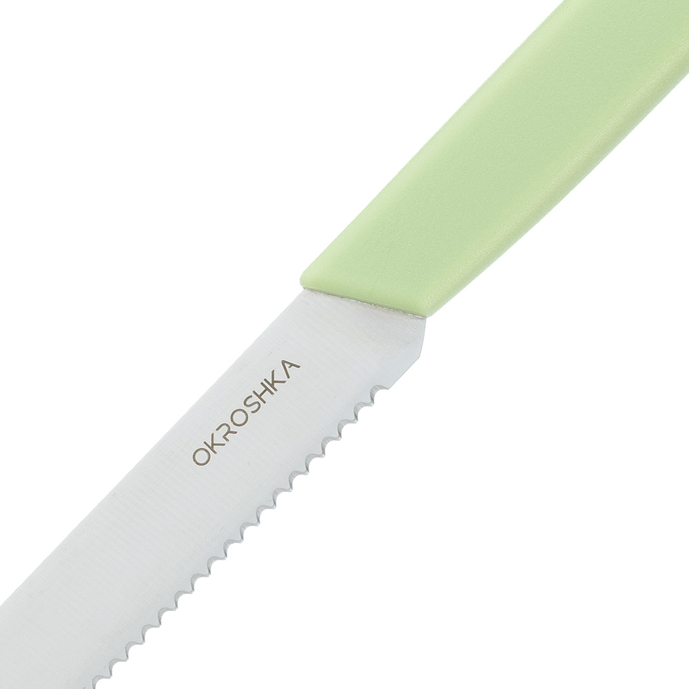 Нож кухонный cтоловый серрейтор Okroshka Salad 11 см, сталь 5cr15mov, рукоять пластик, зеленый