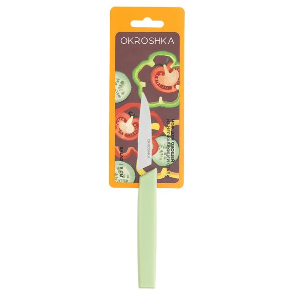 Нож кухонный для овощей Okroshka Salad 8 см, сталь 5cr15mov, рукоять пластик, зеленый