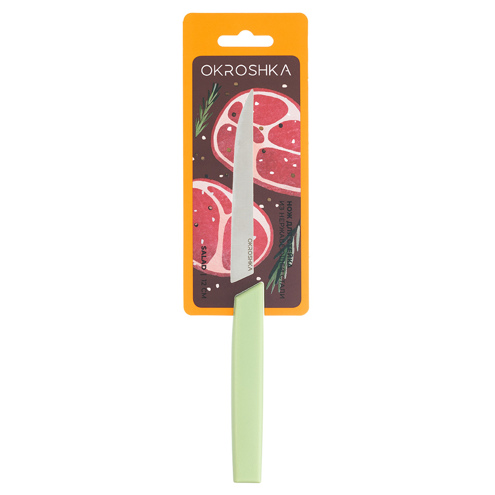 Нож кухонный для стейка Okroshka Salad 12 см, сталь 5cr15mov, рукоять пластик, зеленый