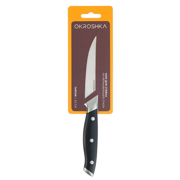 Нож кухонный для стейка Okroshka Tartar 9.5 см, сталь 5cr15mov, рукоять сталь/пластик