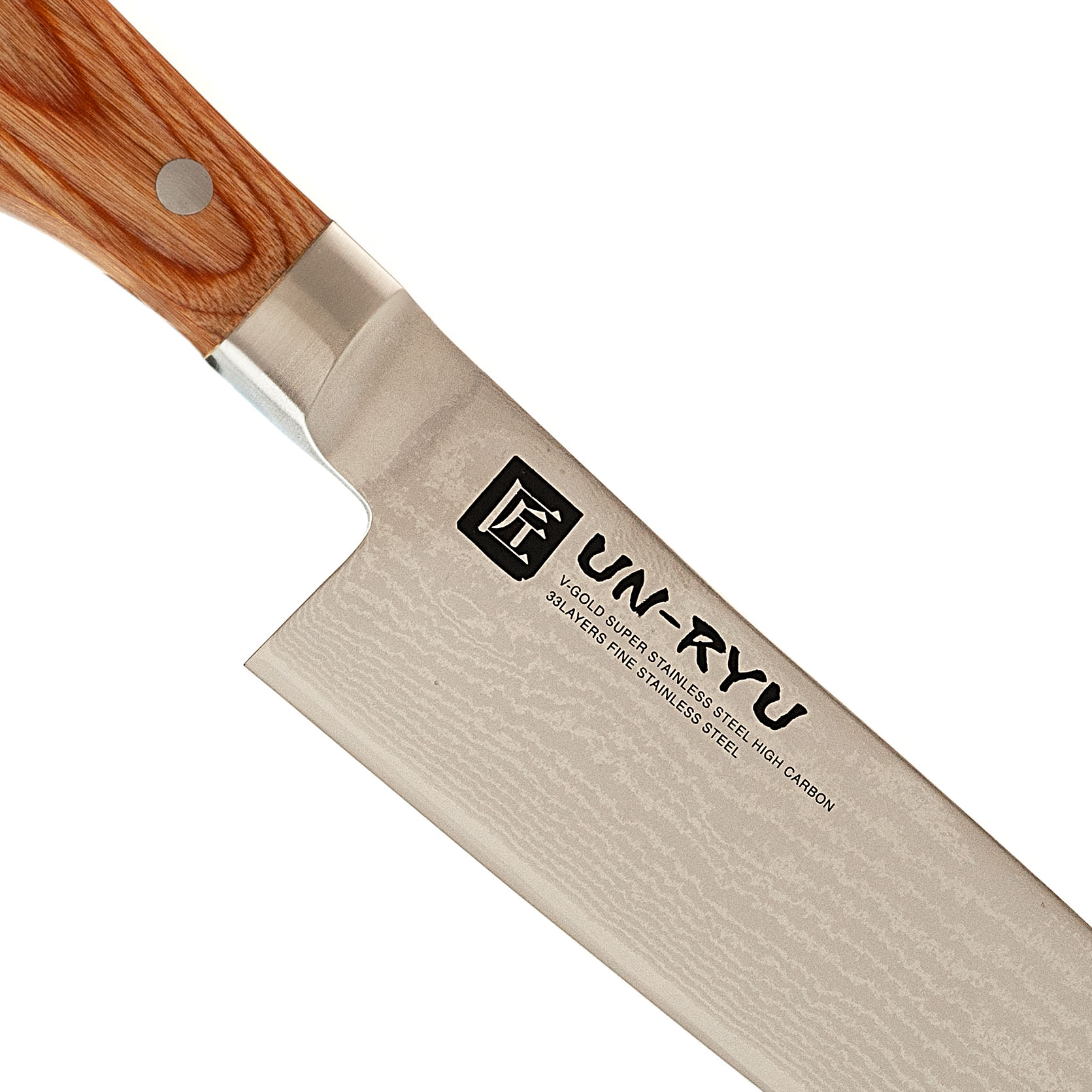 - Сердечник из стали VG-10. Твёрдая ножевая сталь японского уровня, хорошо держащая остроту. Позволяет выводить тонкое лезвие, которое долго остаётся агрессивным на рез и не требует частой доводки.