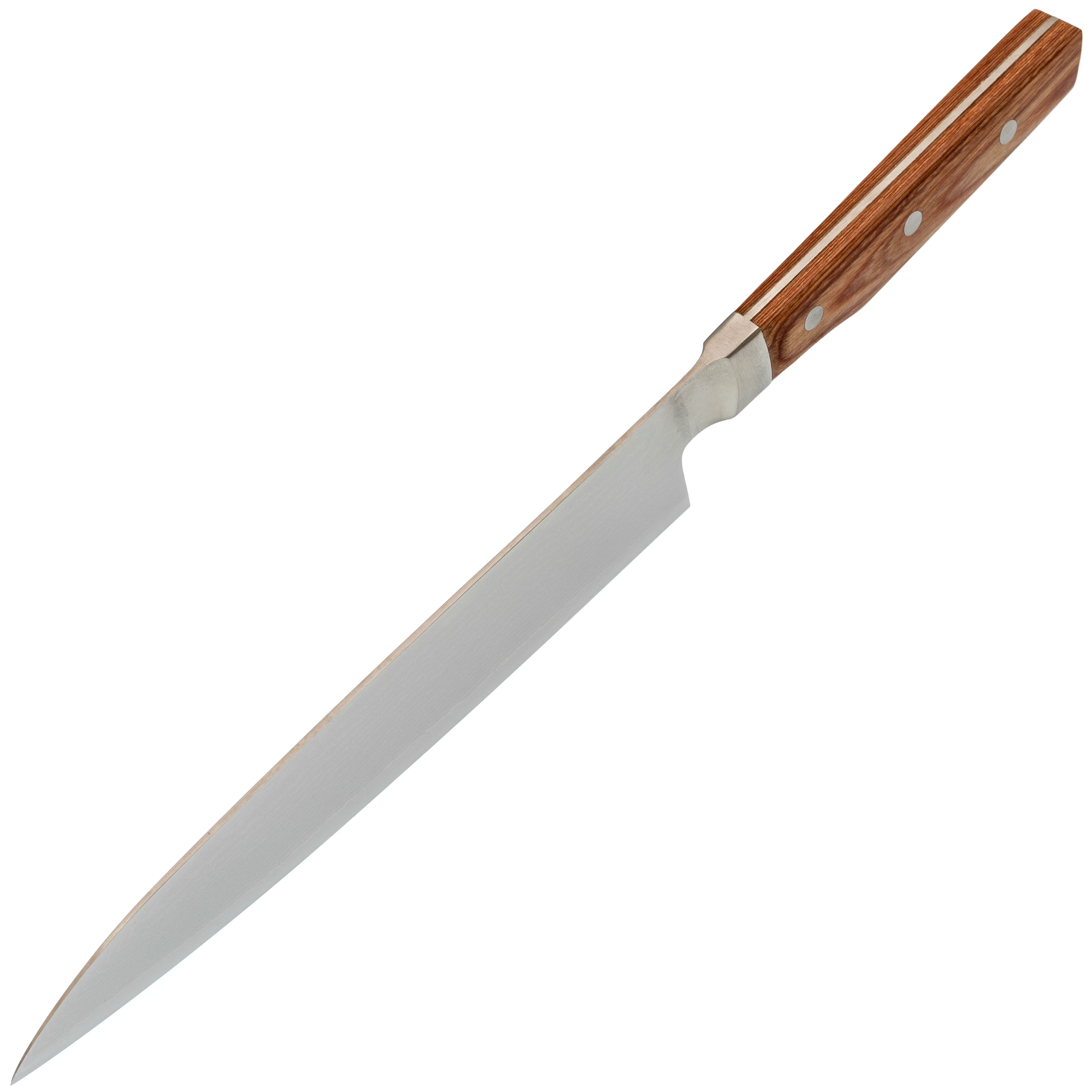 Широкий и очень тонкий клинок с прямыми спусками от обуха легко врезается в продукт и даёт чистый ровный рез по всей длине. Такой профиль отлично подходит для: