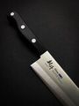 Рукоять изготовлена из пластика. Это практичный и неприхотливый материал, который хорошо подходит для кухонных условий. Пластиковая рукоять лёгкая, что делает инструмент удобным в длительном использовании, и гигиеничная, так как на ней отсутствуют поры и трещины, в которых могли бы скапливаться бактерии.