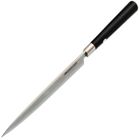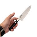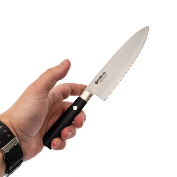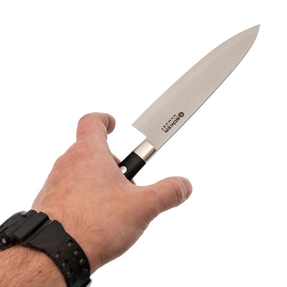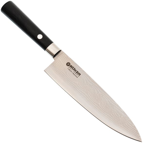 Кухонный нож шеф-повара является одним из самых важных инструментов на кухне и входит в базовое оснащение. Он имеет немного более широкое и длинное лезвие по сравнению с универсальным ножом. Тонкий кончик также подходит для нарезки лука или мелких овощей. Благодаря своей длине он также может использоваться в качестве ножа для мяса. С его помощью легко нарезать даже крупные овощи.