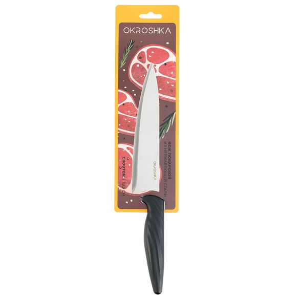 Нож кухонный поварской Okroshka Crouton 19.3 см, сталь 5cr15mov, рукоять пластик, черный