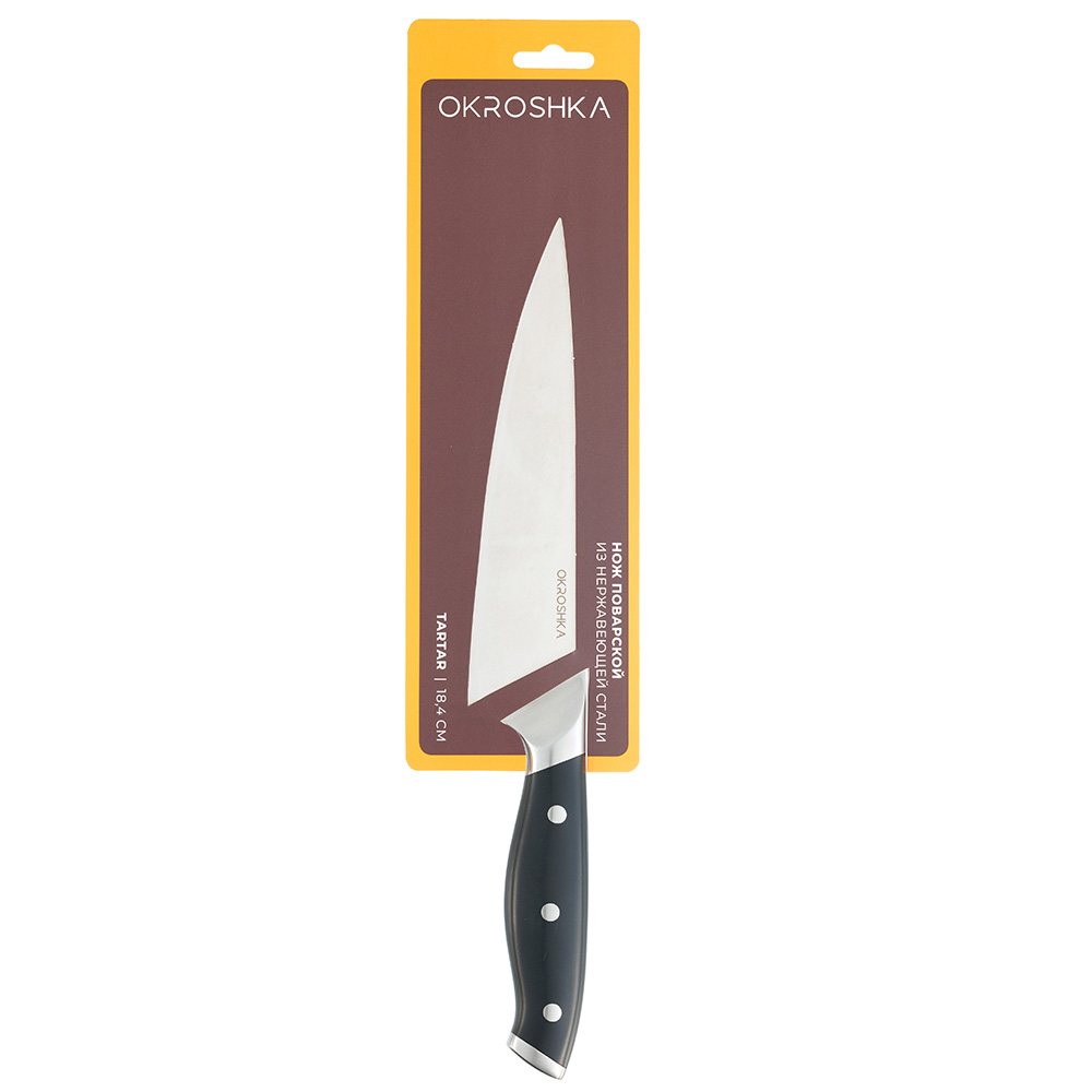 Нож кухонный поварской Okroshka Tartar 18.4 см, сталь 5cr15mov, рукоять сталь/пластик