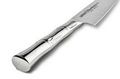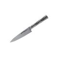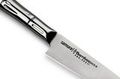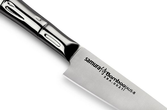 Универсальный кухонный нож Samura Bamboo SBA-0021/Y - многофункциональный и легкий рабочий инструмент, который пользуется огромной популярностью среди профессиональных и домашних поваров. Клинок ножа выполнен из японской нержавеющей однослойной стали AUS-8 с высокими характеристиками коррозиестойкости и устойчивости режущей кромки. Клинок легко поддается полировке и шлифовке. Металлическая рукоять выполнена в форме стебля бамбука из нержавеющей стали. Конструкция ножа хорошо сбалансирована и не имеет швов, что обеспечивает его высокую гигиеничность.