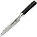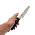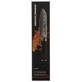 Рукоять изготовлена из инновационного материала - стеклотекстолита G10, который устойчив к воздействию агрессивных сред, влаги и ударных нагрузок. Это отличный выбор для влажной кухонной среды. Металлический больстер обеспечивает бесшовный переход рукояти в клинок, что делает нож гигиеничным и безопасным в использовании.