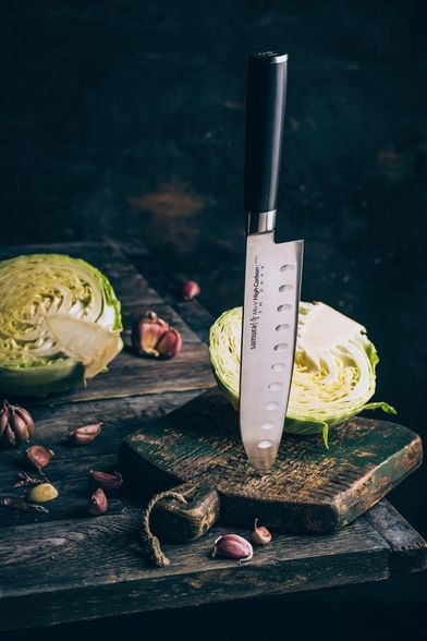 Satin finish, Granton® Edge (овальные углубления на полотне клинка)