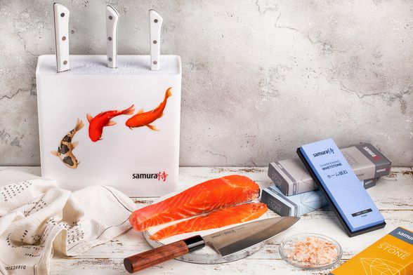 Изначально деба предназначался для рыбных продуктов, однако широкое прочное лезвие прекрасно справится и с разделкой мяса, птицы, а также с их нарезкой на порционные кусочки. Не станет проблемой и отделение мякоти от хрящей, сухожилий и костей (равно как и прочие действия, требующие применения силы и безупречной остроты ножа).