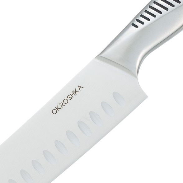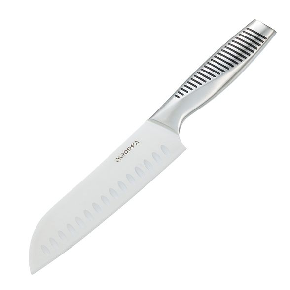 Нож кухонный Сантоку Okroshka Wasabi 17.2 см, сталь 5cr15mov, рукоять сталь