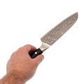 Лезвие ножа имеет небольшую толщину и прямые спуски от обуха, что обеспечивает исключительную резучесть. Благодаря этому нож легко и точно режет даже крупные продукты, делая процесс нарезки овощей, мяса или рыбы быстрым и эффективным. Анатомическая рукоять обеспечивает комфортный и надежный захват, позволяя повару контролировать нож с максимальной точностью.