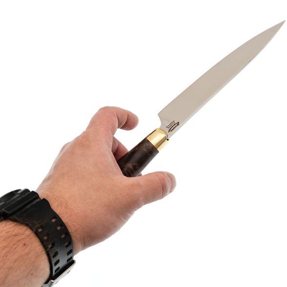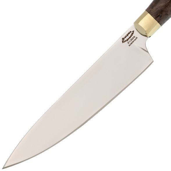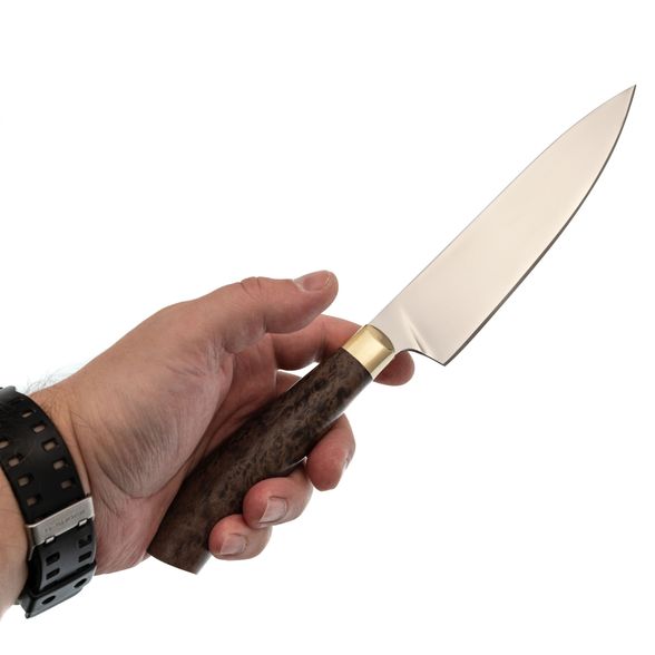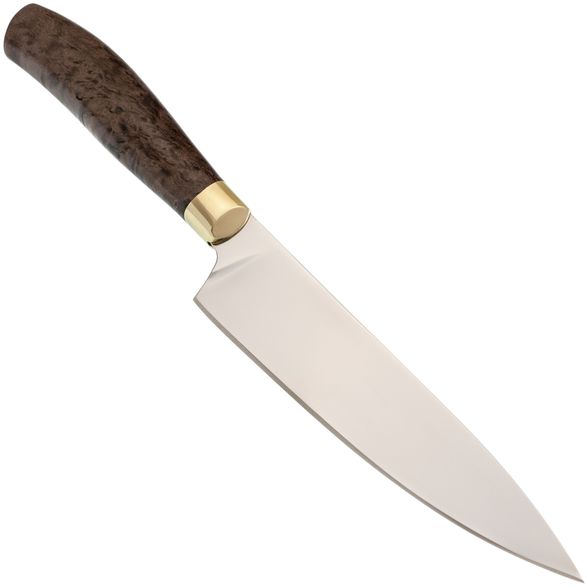 Нож кухонный Шеф-1, сталь Х12МФ латунь, карельская береза